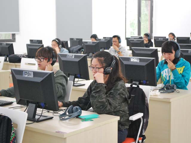 12:00紧张的口语考试开始了,同学们纷纷戴好耳机,全神贯注于考试题目上,不一会儿,一句句流利的英语从同学们的口中流出。为了有一个好的成绩,同学们一遍又一遍的朗读着句子,争取在有限的时间里发挥出自己最好的水平。