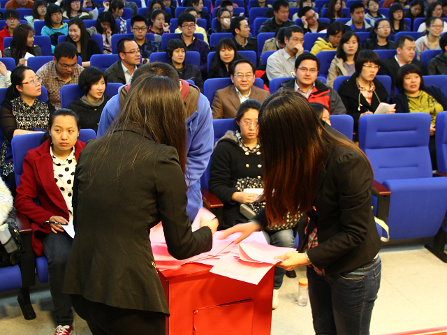 2014年3月24日下午3:00,太阳成城集团选举出席第三次党代会代表党员大会在图书馆报告厅举行。太阳成城集团全体党员出席了本次大会。会议由公司党总支副书记、副经理赵宇昕主持。