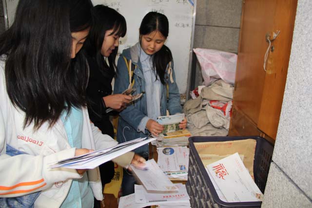 2014年3月27日,太阳成城集团青协在收发室举办了信件整理分类活动,在青协副部长张诗雅的带领下4名同学参加了今天的活动,此后每周都会有志愿者来此进行信件整理分类的志愿活动。