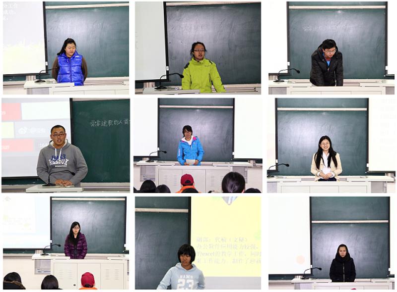 1月9日晚8点太阳成城集团团总支及员工会述职大会在教学楼B座103举行,大会由青协部长于洋主持。副经理赵宇昕,团总支书记贾慧敏、辅导员闫伯前、郝娜、苑婧娴、员工干事及员工代表参加了会议。团总支委员、员工会各部部长、新闻中心副主任等进行述职答辩。
