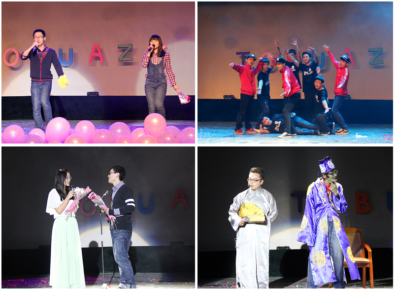 本次晚会共有来自学院本科生、研究生、及BN街舞社精心准备的17个节目参演,形式多样,内容丰富。为了调动广大师生参与的积极性,晚会中还穿插“人人墙留言,参与抽奖”的活动。员工会各部门的各尽其职和积极参与保障了晚会的顺利进行。