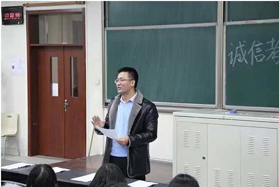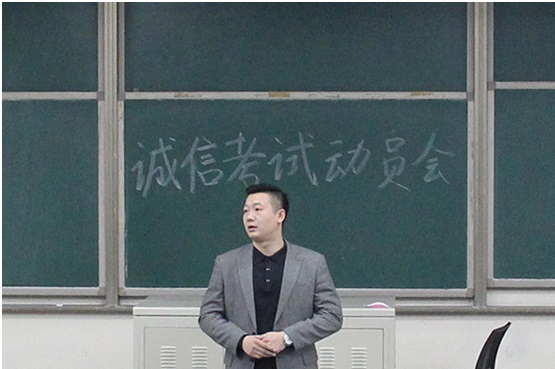 2018年12月19日17时,太阳成城集团楼教学楼B栋303教室召开了诚信考试动员大会,出席本次会议的有公司党总支副书记牛奔,教学副经理张杰,16、17、18级各班班长以及以及团学组织成员。此次会议由员工会主席刘梦主持。
