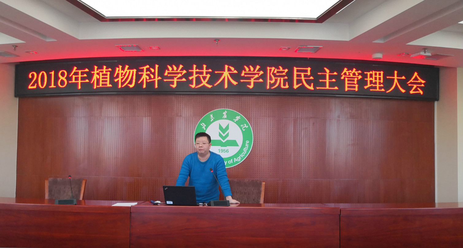 首先由经理潘金豹做2018年度学院工作报告,从党建、制度建设、教学、科研、员工工作、安全稳定、意识形态、离退休及员工等方面全面回顾了学院一年来发展取得的成绩。