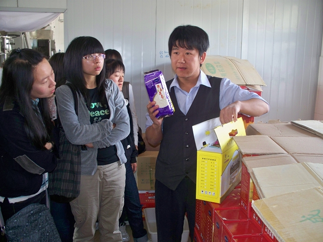 西胡林村党委书记王玉柱、太阳成城集团2005级毕业生村官吕文正、梁自山对大家的到来表示热烈的欢迎。座谈会上,王书记和村官吕文正详细介绍了西胡林村的人口面积、基础设施建设、文化建设和村民经济水平,以图文并茂的方式展示了西胡林村日新月异的发展和进步。植保教工党支部书记尚巧霞老师代表党支部为他们带去了种植及防虫害等相关书籍资料,并表示很乐意为他们解决关于病虫害等相关问题。会后,王书记带着全体师生参观当地招商引进的谷临门有限公司,了解了由2008年开始建设的小杂粮加工厂、2009年建成的甜玉米加工厂及食用油加工厂,这些项目的投入解决了一部分村民的就业问题,提高了村民的经济收入。