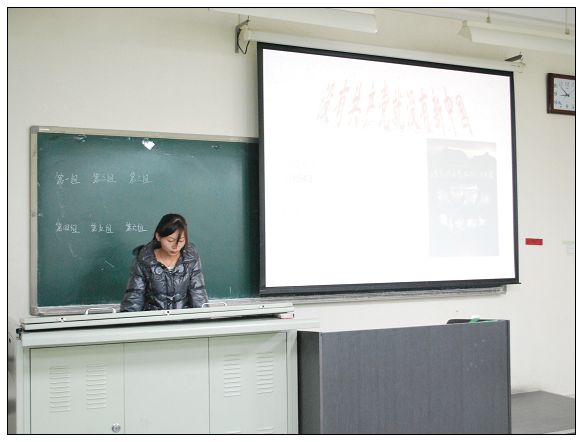 活动由袁金玲同学主持,刘颖同学向大家介绍《春天的故事》、《没有共产党就没有新中国》这两首歌曲的创作背景及相关知识。《春天的故事》讲述的是歌曲描述了改革开放和现代化建设的总设计师邓小平同志南巡的故事,歌曲舒缓而富有温情,旋律优美动听、和气可亲。《没有共产党就没有新中国》则是写唱出了人民对党的信任,对党的热爱,这歌声曾激励无数军民为民族的解放浴血奋斗,这歌声还将鼓舞亿万中国人民奔向社会主义的光辉前程。而现在则激励着我们新时代的青年为实现社会主义现代化不懈奋斗,刘颖同学还出了几道抢答题,让同学们回顾所介绍的内容。