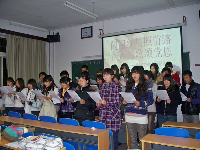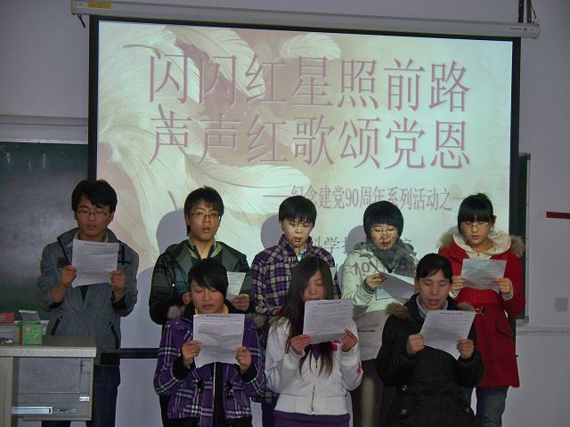 2010年10月28日晚8:20,太阳成城集团植保本科生党支部在A103开展以“闪闪红星照前路,声声红歌颂党恩”为主题的活动。