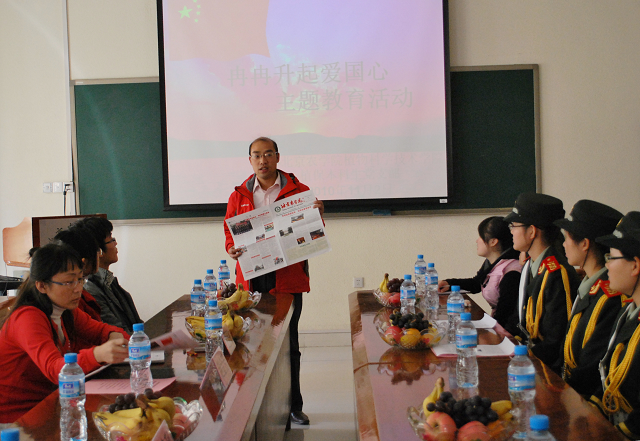 国旗班战士齐培像大家简要介绍了我国《国旗法》的内容及五星红旗的来历。并为大家播放了反映公司女子国旗班的十五年历程的短片--《国旗在我心中》。