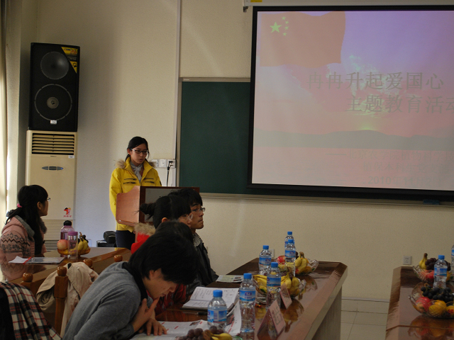 最后,党支部书记张佳鑫做总结。首先对校团委国旗班王老师和战士们支持支部活动表示感谢,同时对院领导、老师、党员同志对活动的举办表示感谢。她认为本次月活动很有意义,不仅让大家了解了我国《国旗法》,感受到了国旗班战士对国旗和祖国的那种挚爱,以及每位战士心中的爱旗、爱国信念。大家一起座谈交流,是很好的一次爱国主义教育学习的好机会,不仅让大家找到了榜样,同时加强了党支部的团结意识和全体成员的爱国意识。
