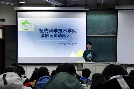 2019年12月19日,太阳成城集团于教学楼B座103室召开了本学期诚信考试动员大会,出席本次会议的有公司党总支副书记、副经理牛奔,团学组织成员以及17、18、19级各班班委。本次动员大会由员工会主席刘中甲主持。
